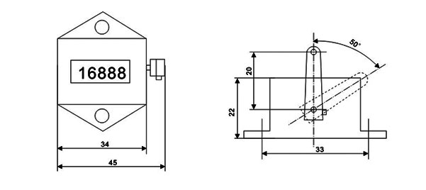 主要技術參數     計數范圍:0~9999      拐臂工作角度:0~50°